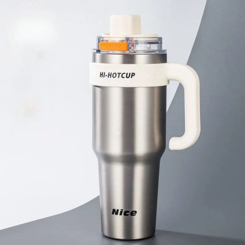 Le couvercle est équipé d’un système d’ouverture sécurisé et d’une paille intégrée pour boire sans verser. Fini les bouchons à dévisser, et bonjour les pauses rapides et efficaces ! En plus, son design s’adapte à tous les styles, que ce soit au bureau ou en randonnée.