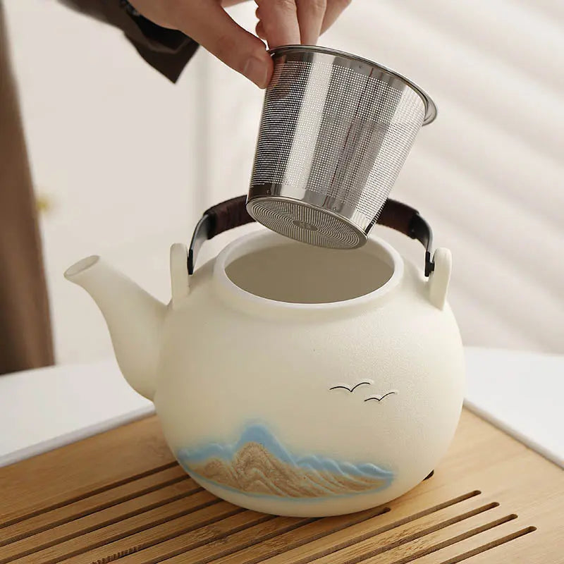 Théière Japonaise en Céramique de 1L au style montagne et oiseaux